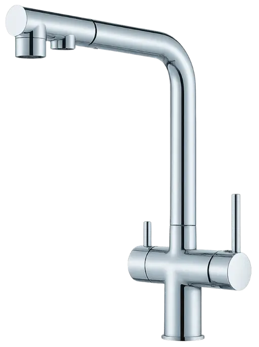 Die LUNA 3-Wege-Armatur kombiniert klassisches Warm- und Kaltwasser mit einer separaten Leitung für gefiltertes Trinkwasser in einem eleganten Chrom-Design. Die ausziehbare Brause mit umschaltbarem Strahlregler bietet hohen Komfort im Alltag, während das gefilterte Wasser über einen eigenen, separaten Auslass geführt wird. Ideal für Küchen mit Untertisch-Wasserfiltern oder Umkehrosmoseanlagen.