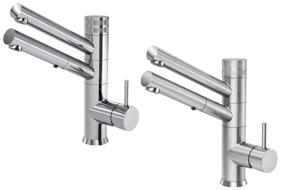 Warm- und Kaltwasser über den unteren Auslauf, gefiltertes Trinkwasser über einen separaten oberen Auslauf. Die CUCINA IDEALE bietet eine saubere Trennung der Wasserarten, hochwertige Materialien und ist wahlweise in Chrom oder Edelstahl-Look sowie mit links- oder rechtsseitigem Bedienhebel erhältlich.