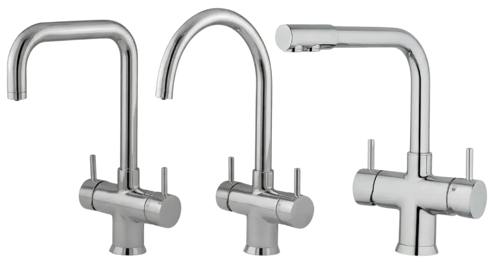 Die NOBIUS 5-Wege-Armatur vereint klassisches Warm- und Kaltwasser mit stillen, gekühlten und sprudelnden Trinkwasseroptionen in einer eleganten Küchenarmatur. Gefertigt aus hochwertigem, verchromtem Messing und hergestellt in Italien, überzeugt sie durch klare Bedienung über zwei getrennte Mischer, hygienisch getrennte Wasserwege und zeitloses Design. Entwickelt für den Einsatz mit Wassersprudelanlagen.