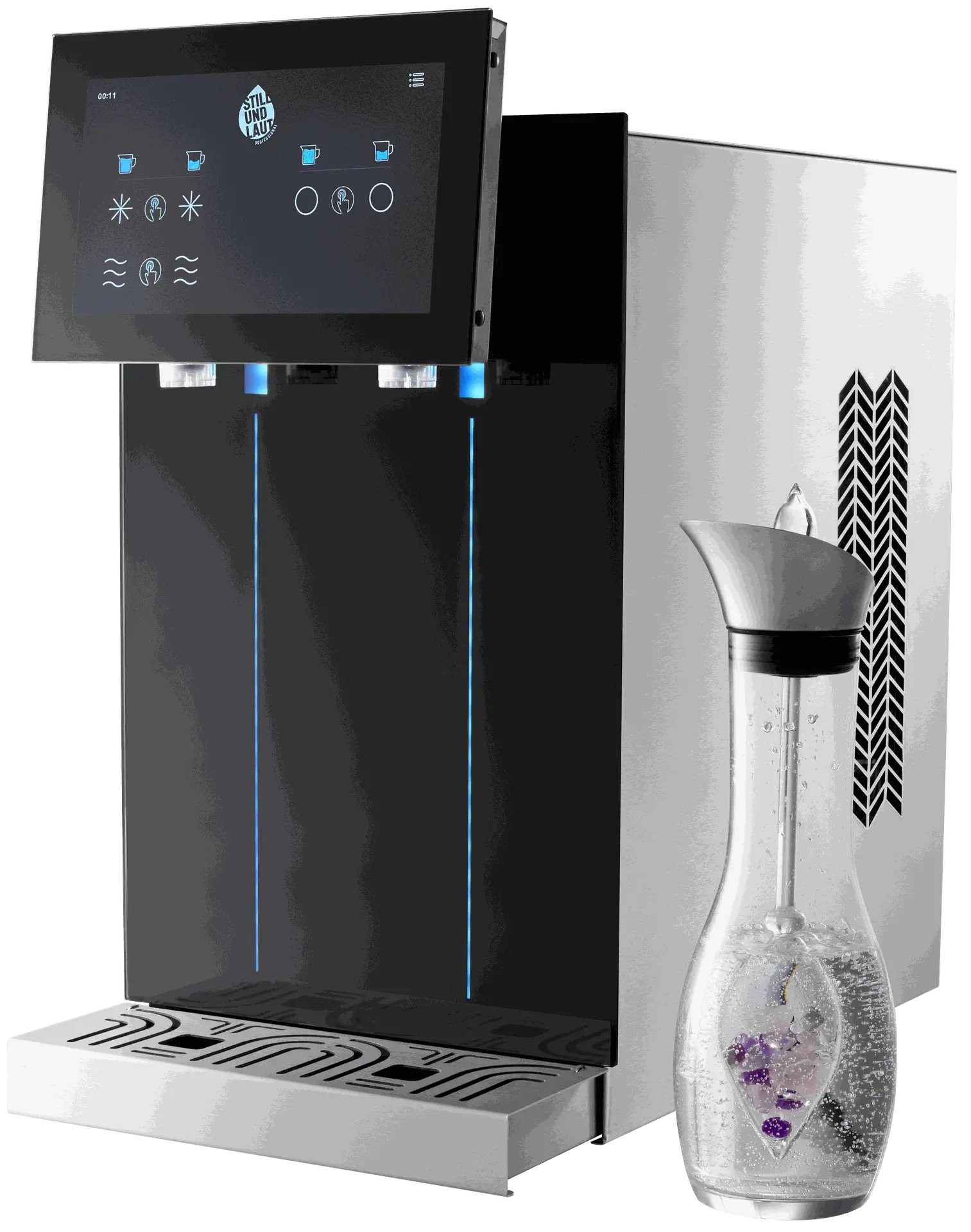 Mit einer Ausgabekapazität für bis zu 90 Personen kombiniert die STILLUNDLAUT QUANTUM 90 kraftvolle Kühltechnologie mit feinperliger Karbonisierung und patentierter Hygienesicherung – als leistungsstarke Auftischlösung für professionelle Ansprüche.